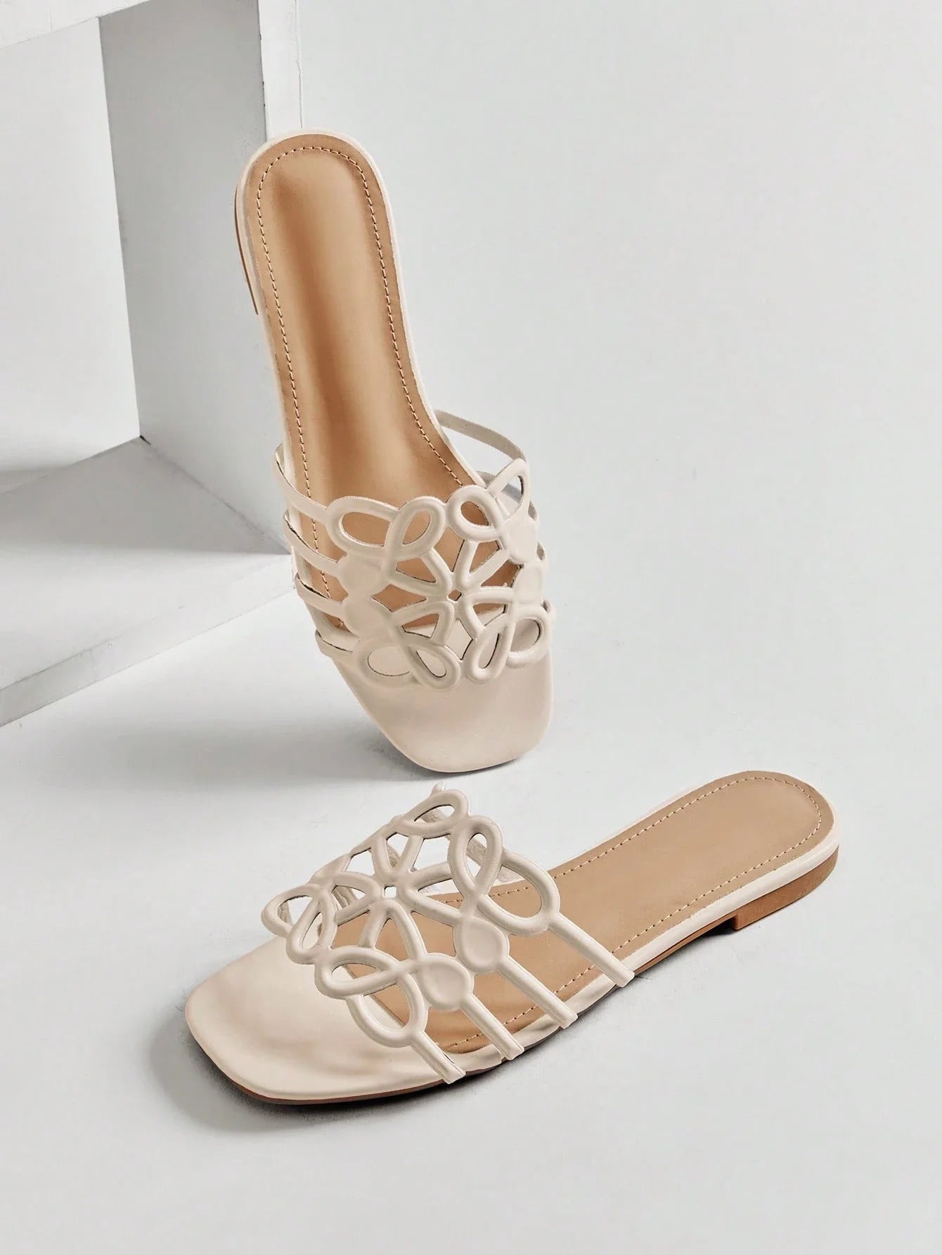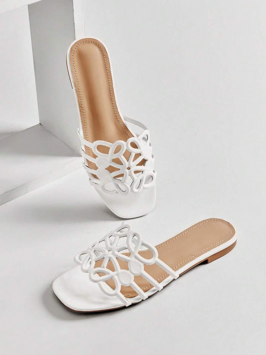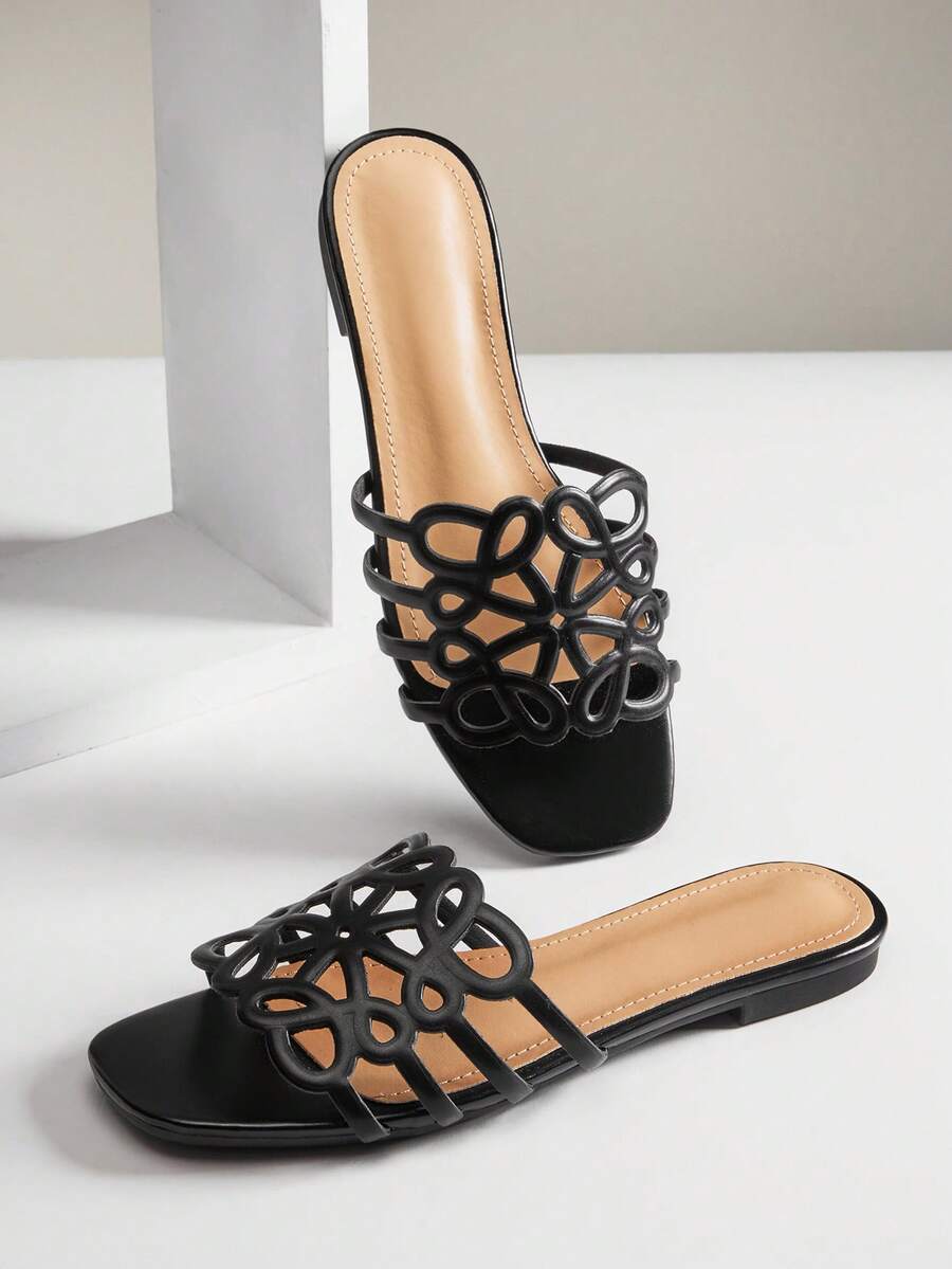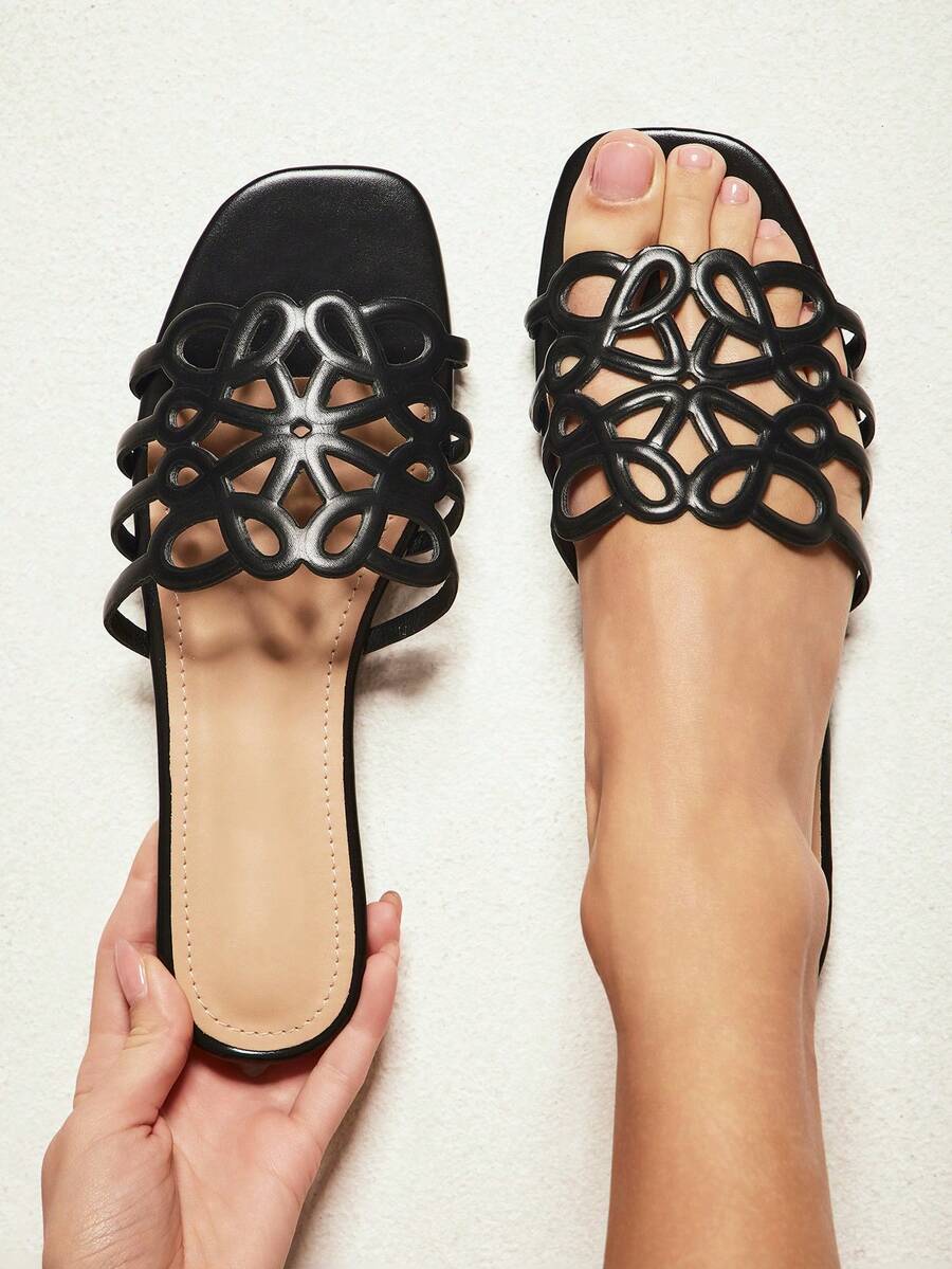 Dép xỏ ngón PU mũi vuông nữ